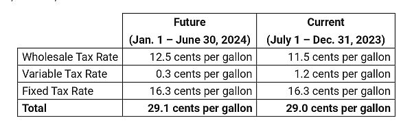 Motor Fuels Tax Rate Set for January 1 through June 30, 2024